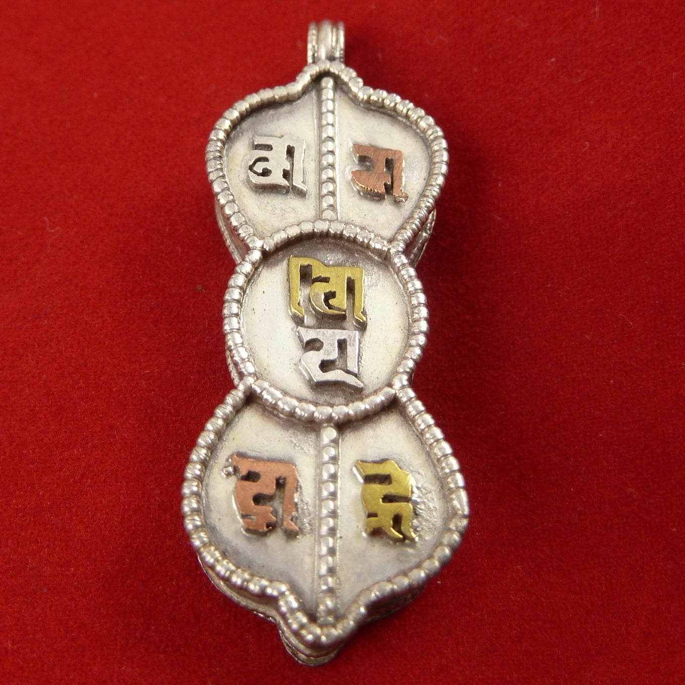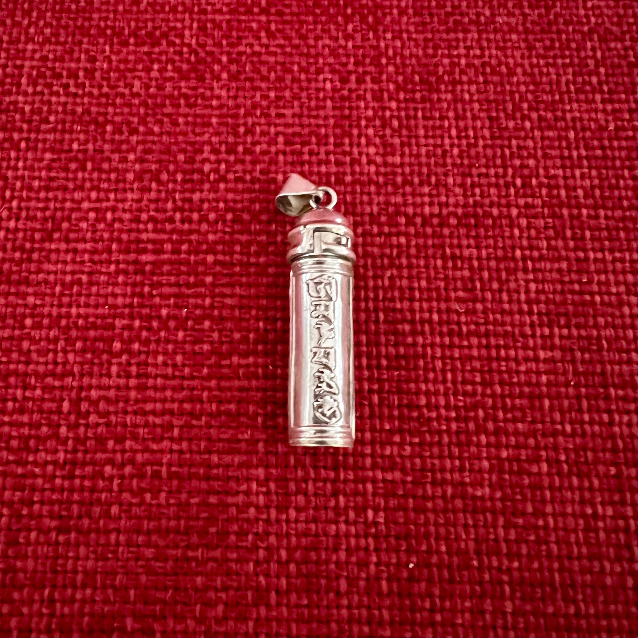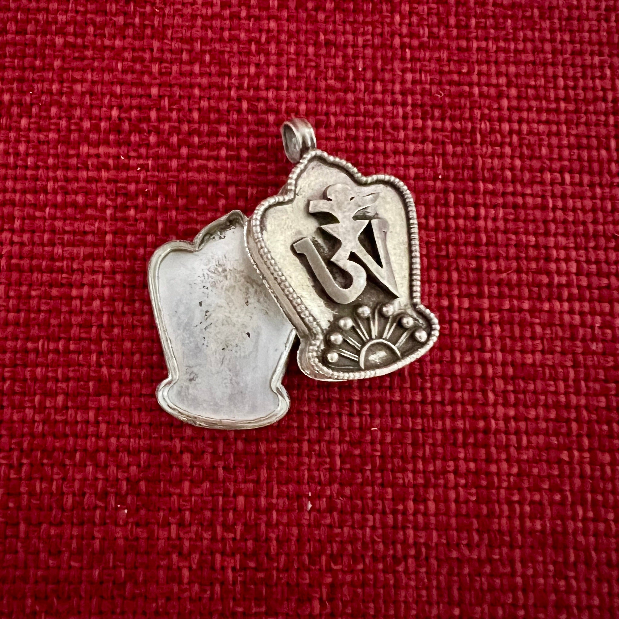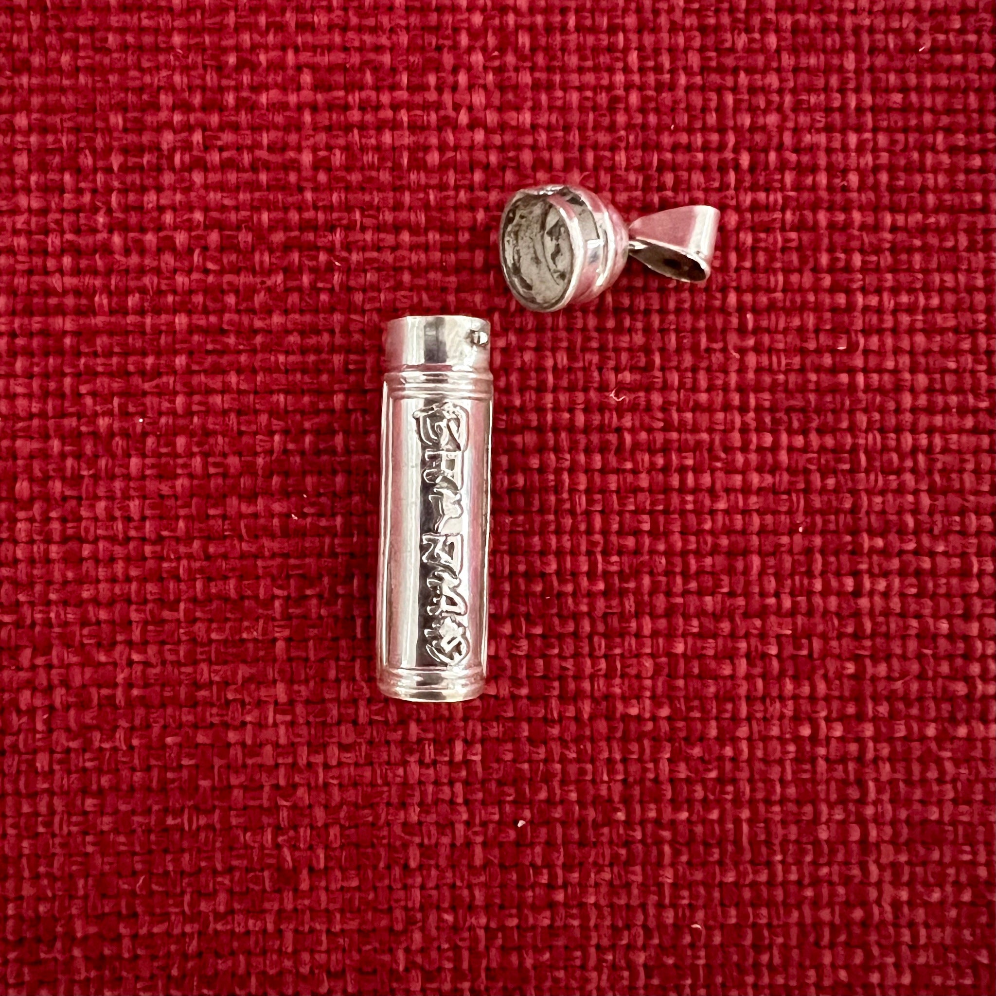 This 3.5cm Sterling Silver Cylinder Locket (or Gau in Tibetan) was handmade in Nepal and features Om Mani Padme Hung, the mantra of compassion, in Tibetan symbols on one side...