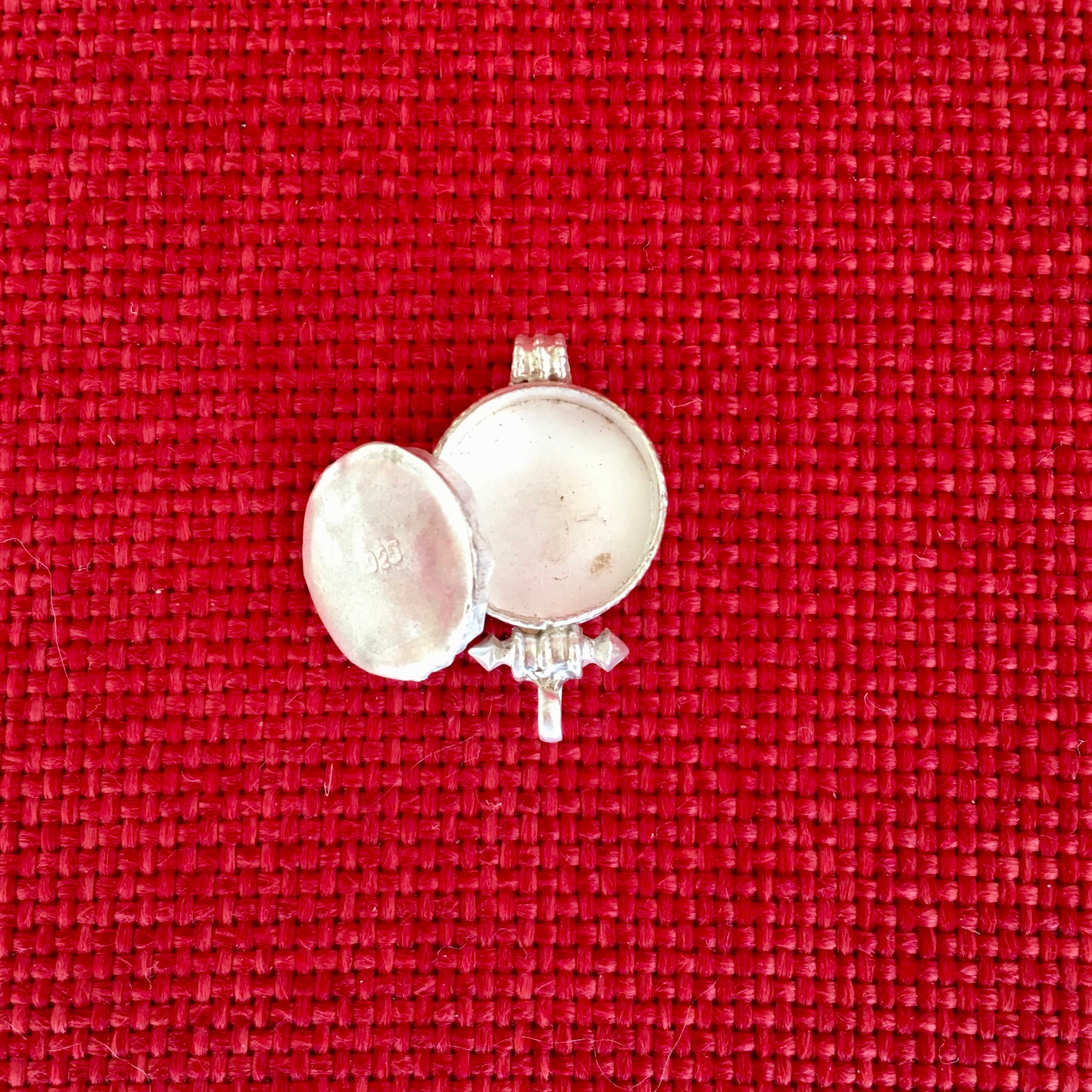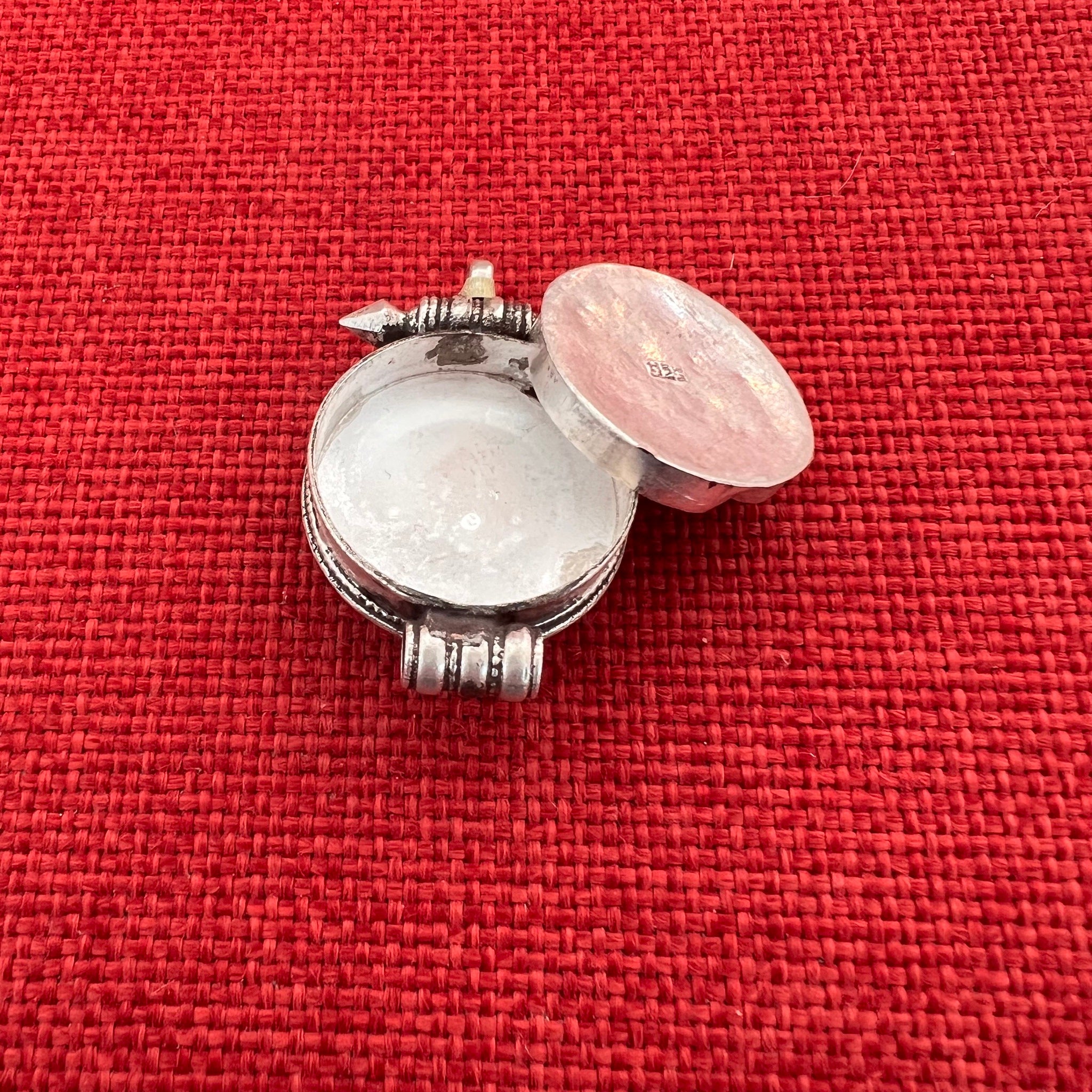 This 2.7cm diameter Sterling Silver Locket (or Gau in Tibetan) was handmade in Nepal and features Auspicious Symbols of Tibetan Buddhism. The locket can be opened by unscrewing at the bottom...