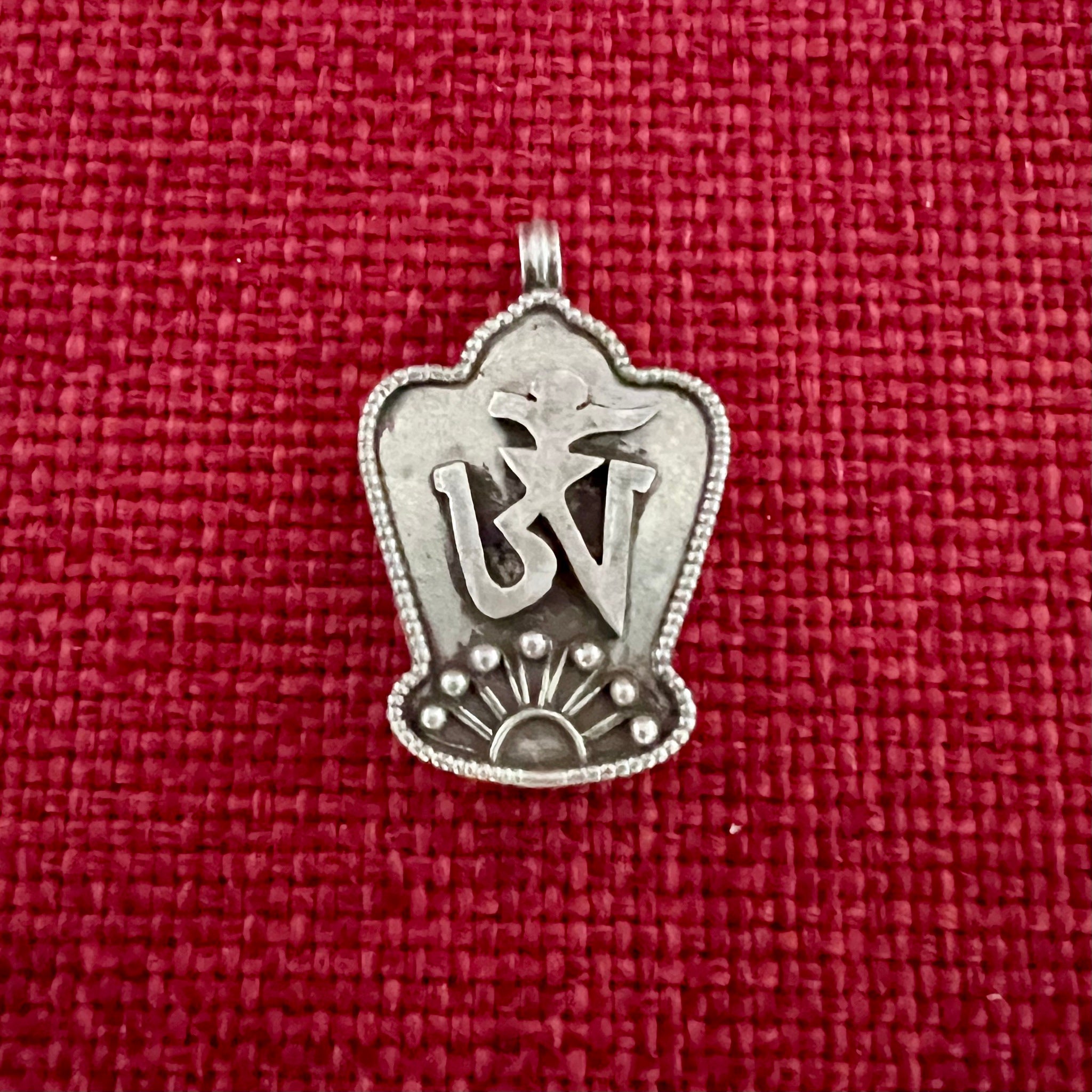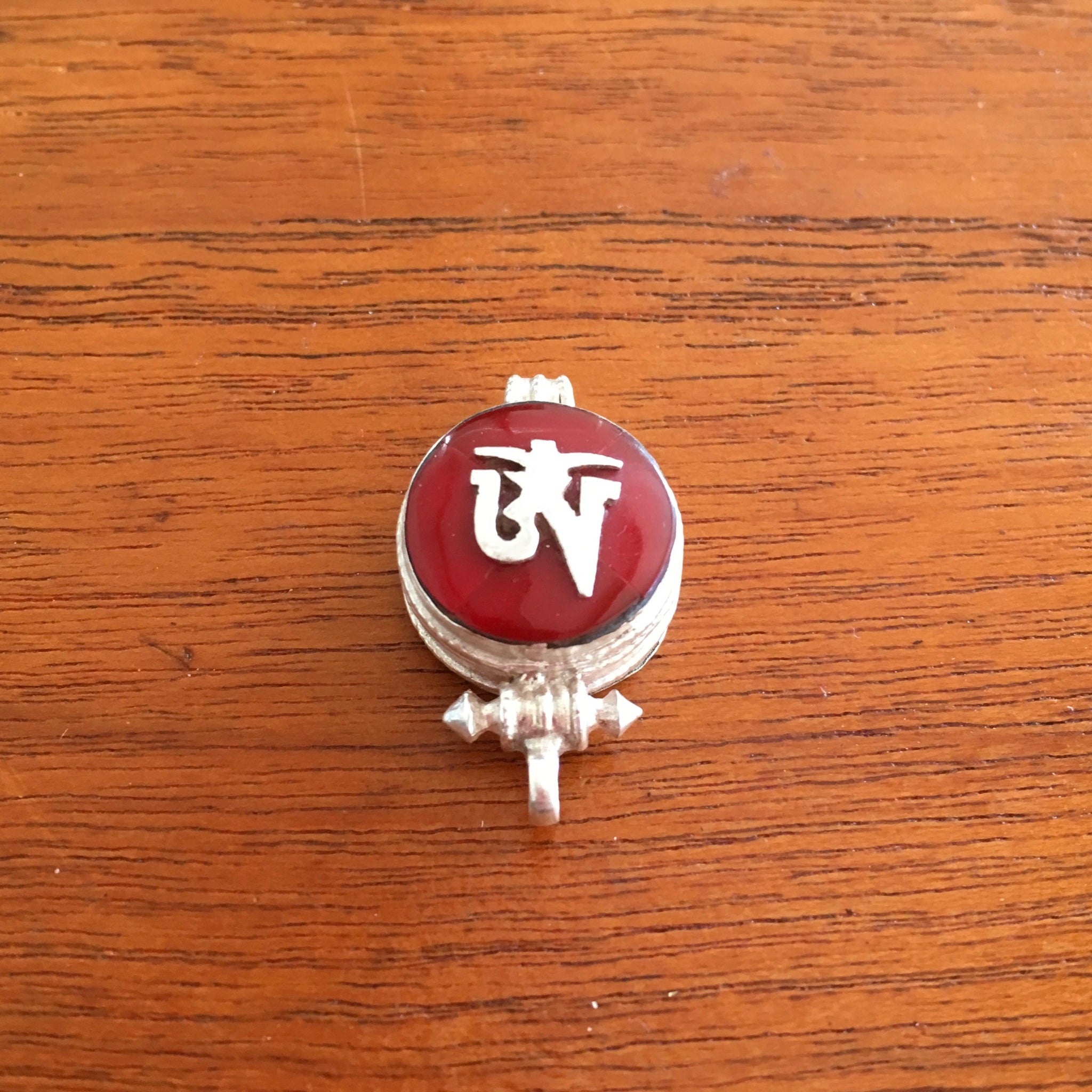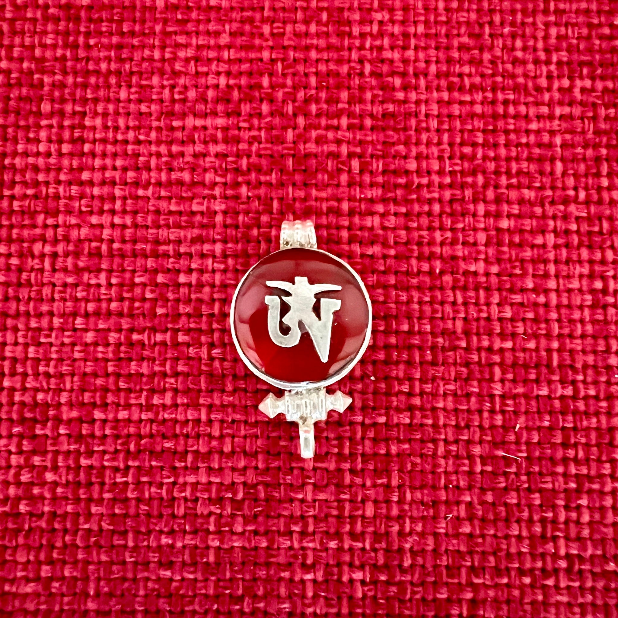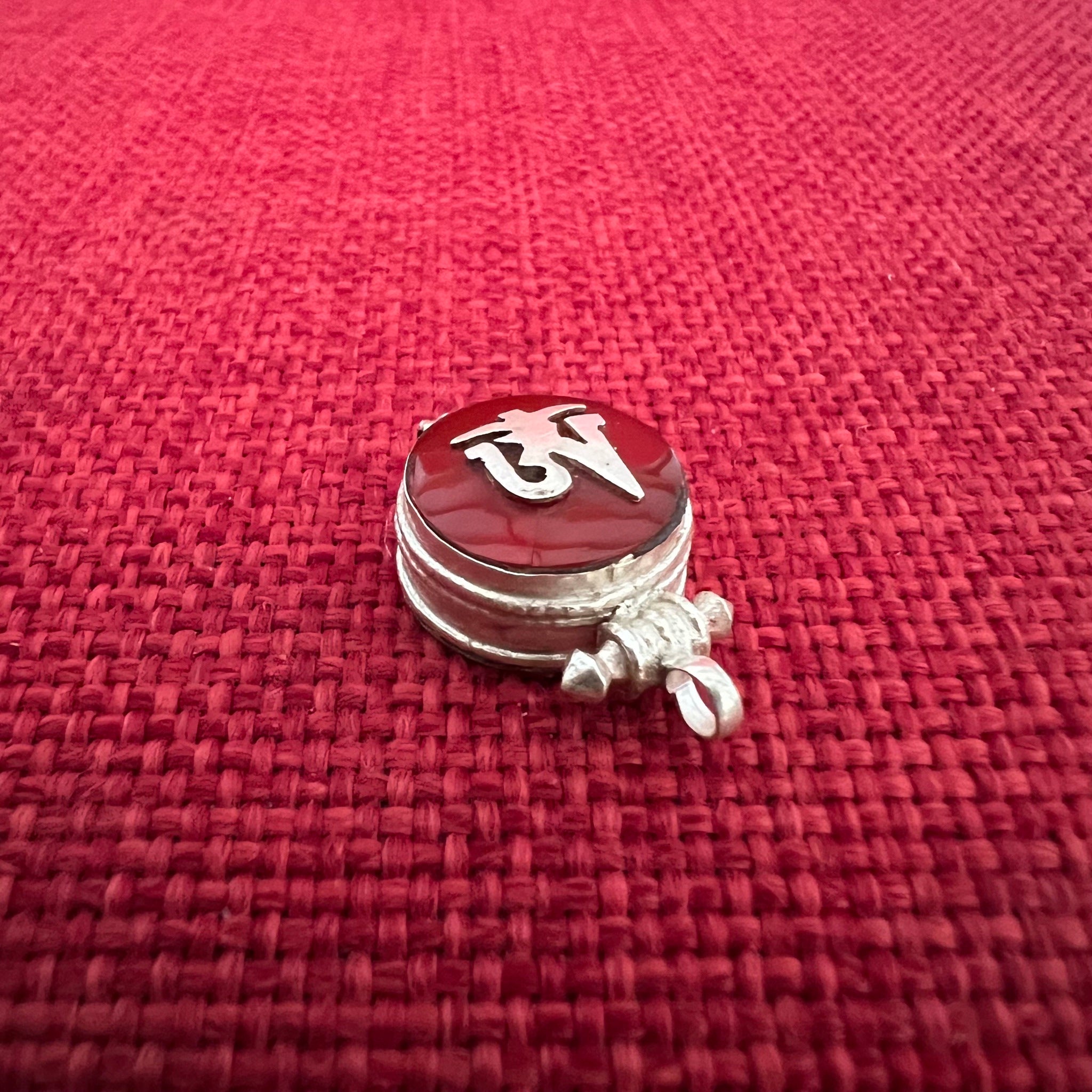 This 1.5cm diameter Sterling Silver Locket (or Gau in Tibetan) was handmade in Nepal and features the Tibetan Om symbol set on red colour semi-precious stone. The locket can be...